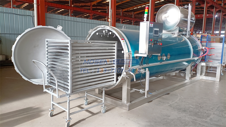 殺菌鍋設(shè)備主要用于肉制品、水果罐頭、奶制品、豆制品、農(nóng)副產(chǎn)品、飲料制品、蛋制品、水產(chǎn)品、八寶粥、調(diào)味品、食用菌、寵物食品、湯和熟食以及果蔬等食品的殺菌。殺菌鍋由鍋體、鍋蓋、開(kāi)啟裝置、鎖緊鍥塊、安全聯(lián)鎖裝置、軌道、殺菌盤(pán)、蒸汽噴管及若干管口、保溫層、熱水罐等組成。